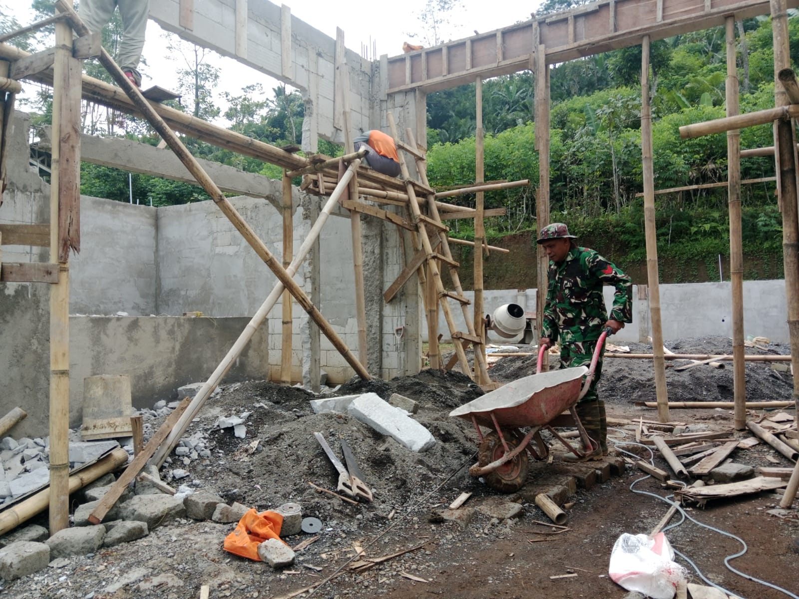 Wonosobo- Komitmen TNI dalam mendukung percepatan pembangunan di wilayah terus ditunjukkan melalui peran aktif Bintara Pembina Desa (Babinsa). Hal ini terlihat dari dedikasi Kopka Ihsan Ngadi, Babinsa Koramil 02/Watumalang Kodim 0707/Wonosobo, yang tanpa lelah terus mengawal progres pembangunan KDKMP di Desa Wonosroyo, wilayah binaannya. (4/4/2026)