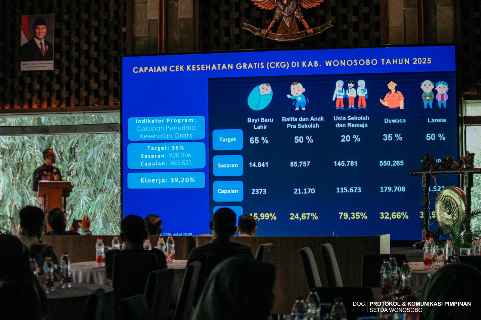 Capaian tersebut dipaparkan dalam agenda evaluasi dan *kick-off* CKG 2026 di Kabupaten Wonosobo pada Rabu (22/4/2026). Angka realisasi Wonosobo berhasil melewati target awal 36 persen, sekaligus berada di atas rata-rata pencapaian Provinsi Jawa Tengah yakni 37,73 persen.