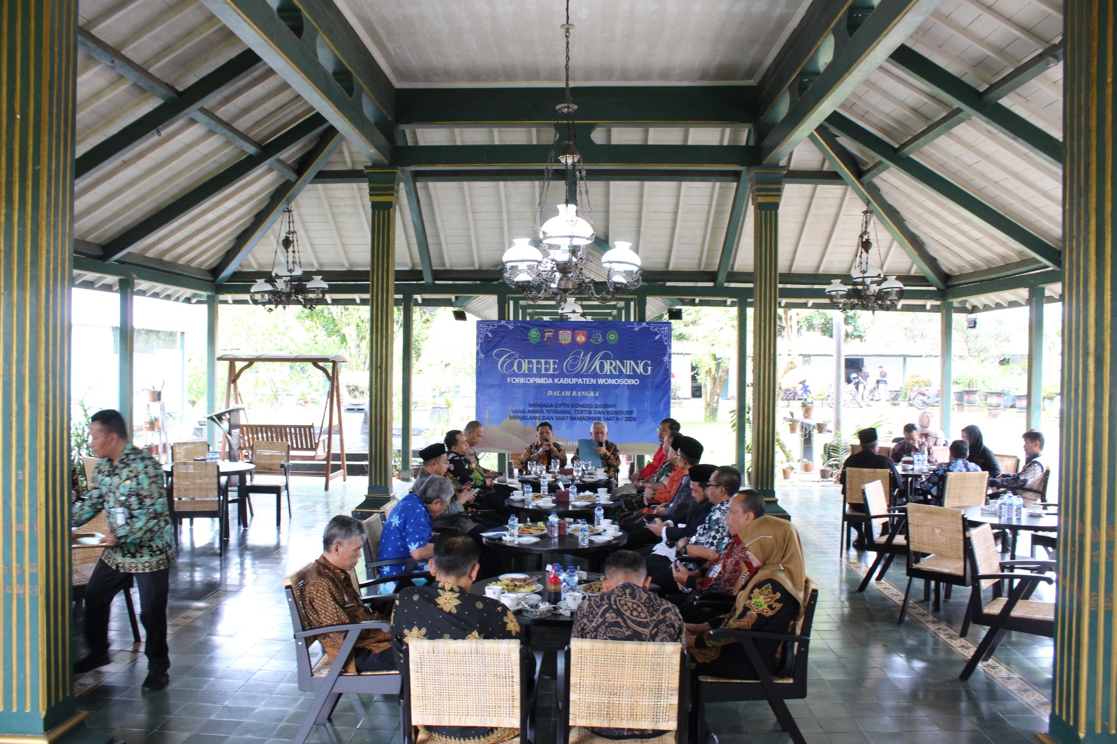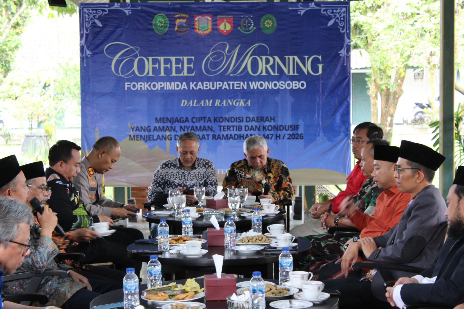 Wonosobo – Pemerintah Daerah Kabupaten Wonosobo bersama Forkopimda menggelar acara coffee morning sebagai sarana silaturahmi dan koordinasi untuk menjaga situasi keamanan, kenyamanan, ketertiban, serta kondusivitas daerah menjelang dan selama bulan suci Ramadhan 1447 H/2026 M.