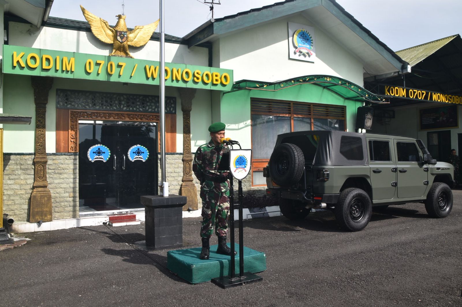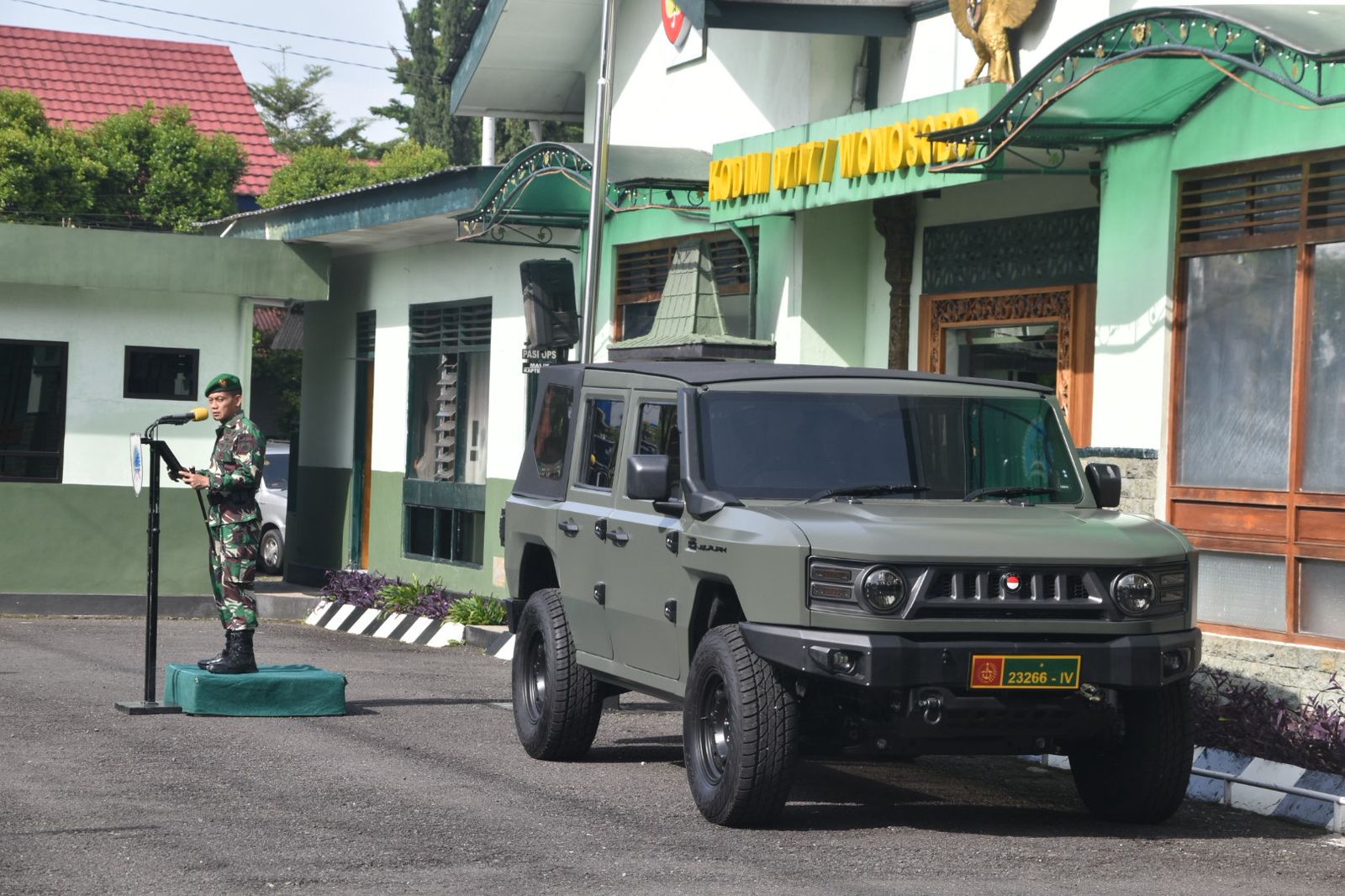 Wonosobo, satumenitnews.com – Komandan Kodim 0707/Wonosobo Letkol Inf Yoyok Suyitno S. Sos memecahkan kendi tanah liat tepat di depan kendaraan dinas baru berjenis Maung. Prosesi ini menjadi penanda resmi dimulainya operasional mobil taktis tersebut di Markas Kodim 0707/Wonosobo pada Senin (2/3/2026).