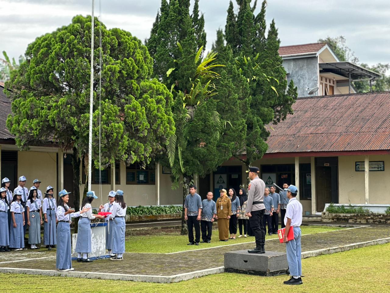 Wonosobo — Wakapolres Wonosobo, Kompol Agustinus David Putraningtyas bertugas sebagai inspektur upacara di SMAS Kristen Wonosobo, Senin (12/1/2026). Kegiatan ini merupakan bagian dari program Safari Sekolah Ramah Anak yang digelar sebagai upaya menciptakan lingkungan pendidikan yang aman, nyaman, dan bebas dari kekerasan.