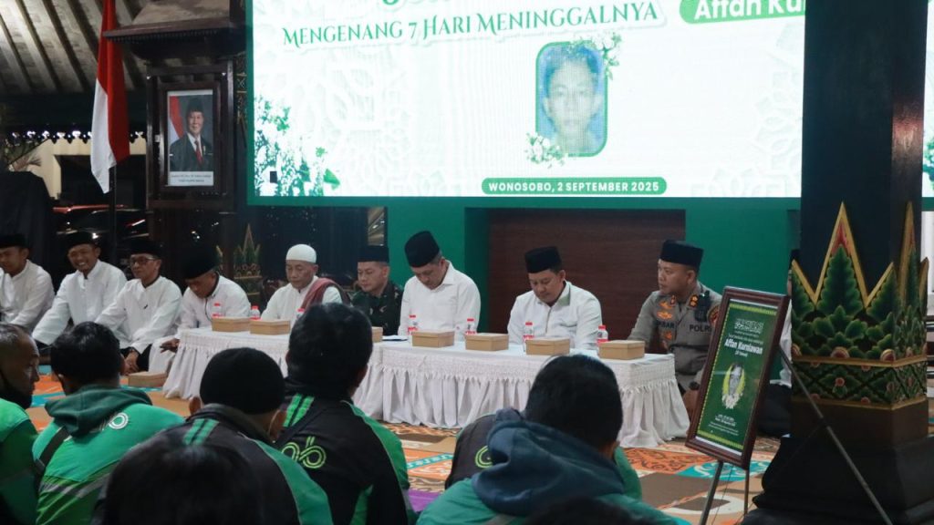 Wonosobo – Suasana hangat dan penuh kekeluargaan terlihat di Pendopo Kabupaten Wonosobo pada Selasa (malam, 2/9/2025). Ratusan pengemudi ojek online (ojol) dari berbagai komunitas berkumpul bersama jajaran Forkopimda untuk mengikuti doa bersama demi keselamatan, kelancaran, dan kebaikan bagi masyarakat Wonosobo serta bangsa Indonesia.