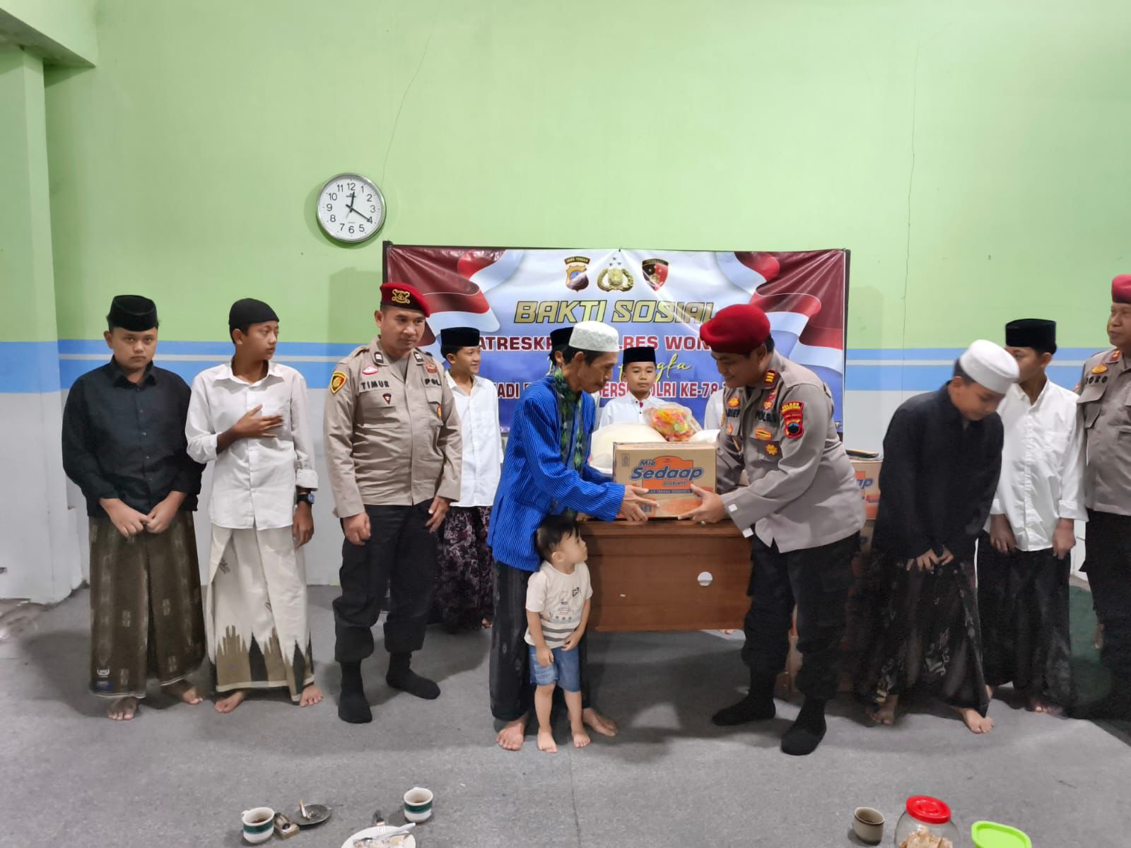 Kegiatan utama terpusat di Pondok Pesantren Asy-Syuja’iyyah, Munggang Bawah, Kalibeber, Mojotengah, dipimpin langsung oleh Kasat Reskrim Polres Wonosobo AKP Arif Kristiawan, S.H., M.H. Suasana hangat terlihat saat para polisi menyapa santri dan pengurus pondok dengan senyum dan sapaan akrab.
