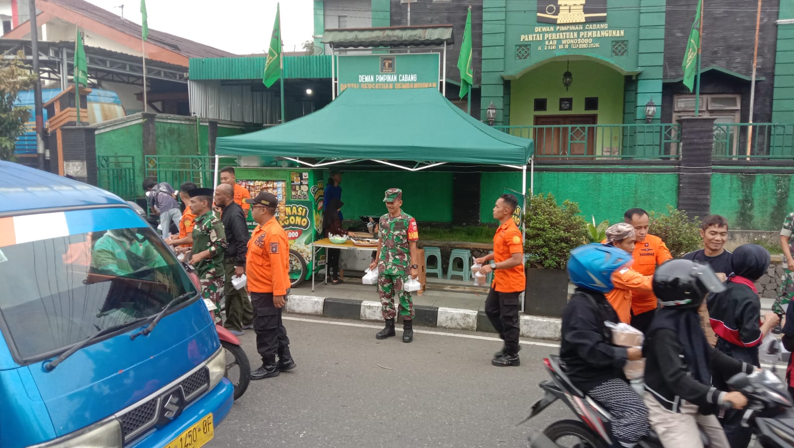 Hadir memimpin langsung di lapangan adalah Danramil 01/Wonosobo Kapten Cke Sapta Wibawa, Kepala Pelaksana BPBD Kabupaten Wonosobo Drs. Sumekto Hendro Kustanto, M.M., serta Ketua RPB Sobo Alas Aiptu Suwignyo. Untuk menyukseskan pembagian makanan berbuka ini, Aiptu Suwignyo juga mengerahkan 50 orang relawan ke lokasi.