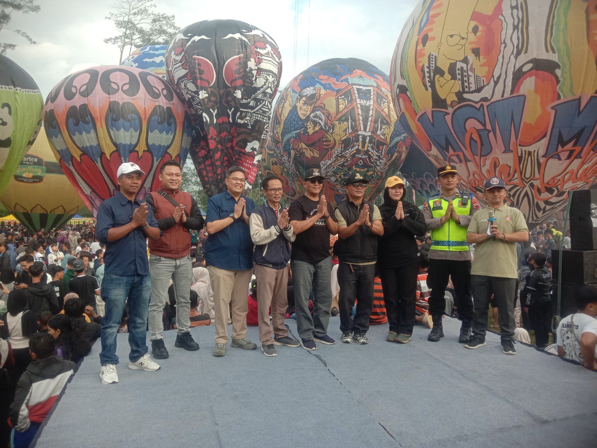 Ribuan pasang mata menatap ke atas mengamati kekompakan peserta menjaga keseimbangan balon. Atraksi visual ini sukses menjadi magnet wisata budaya yang kuat di Kabupaten Wonosobo tahun ini.