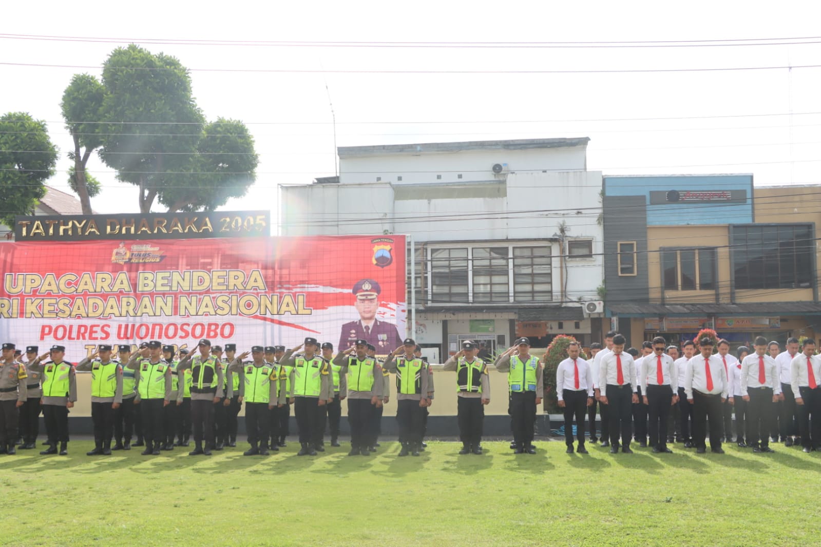 Polres Wonosobo melaksanakan upacara Hari Kesadaran Nasional yang diikuti oleh seluruh personel, baik anggota Polri maupun ASN, di halaman Mapolres Wonosobo, Senin (18/2).