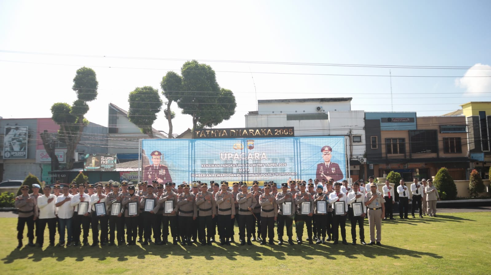 Wonosobo — Polres Wonosobo melaksanakan Upacara Kenaikan Pangkat bagi PNS Polri dari Penata ke Penata Tingkat I terhitung mulai tanggal (TMT) 1 April 2026, yang dirangkaikan dengan pemberian reward dan punishment pada Jumat, 10 April 2026. Upacara tersebut dipimpin langsung oleh Kapolres Wonosobo, AKBP M. Kasim Akbar Bantilan, S.I.K., M.M., serta diikuti oleh seluruh personel Polres Wonosobo dan para Kapolsek jajaran.