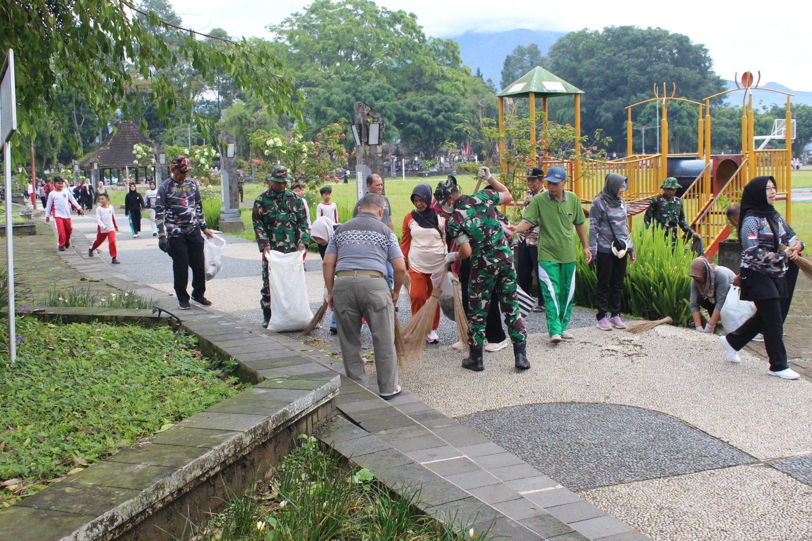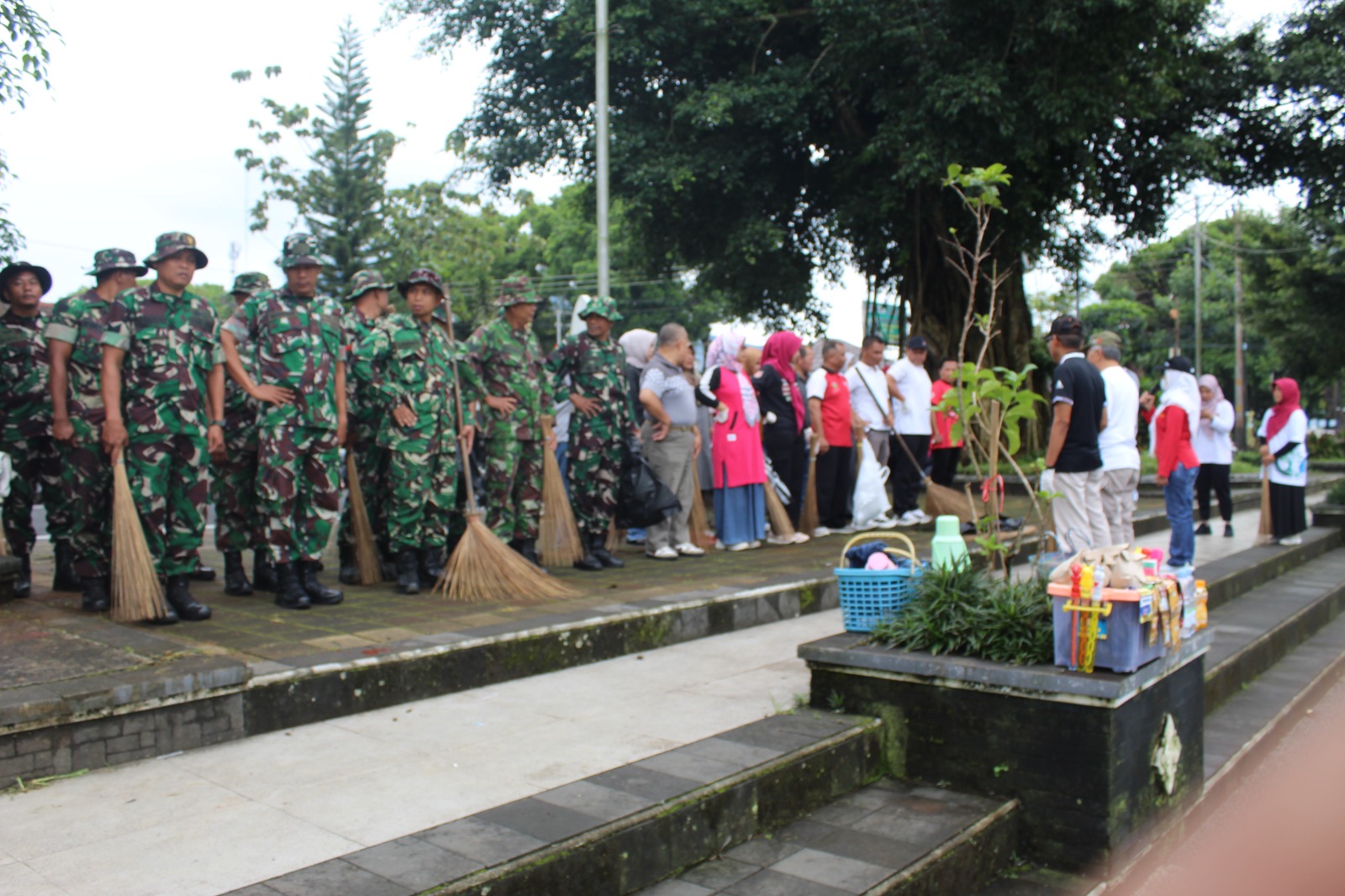 Wonosobo – Kodim 0707/Wonosobo bersama Pemerintah Daerah Kabupaten Wonosobo melalui Dinas Lingkungan Hidup melaksanakan Gerakan Nasional Indonesia ASRI (Aman, Sehat, Resik, Indah) dengan kegiatan pembersihan massal di Alun-alun Wonosobo. Acara bersih-bersih ini dipimpin langsung oleh Sekretaris Daerah (Sekda) Wonosobo One Andang Wardoyo. (13/2/2026)