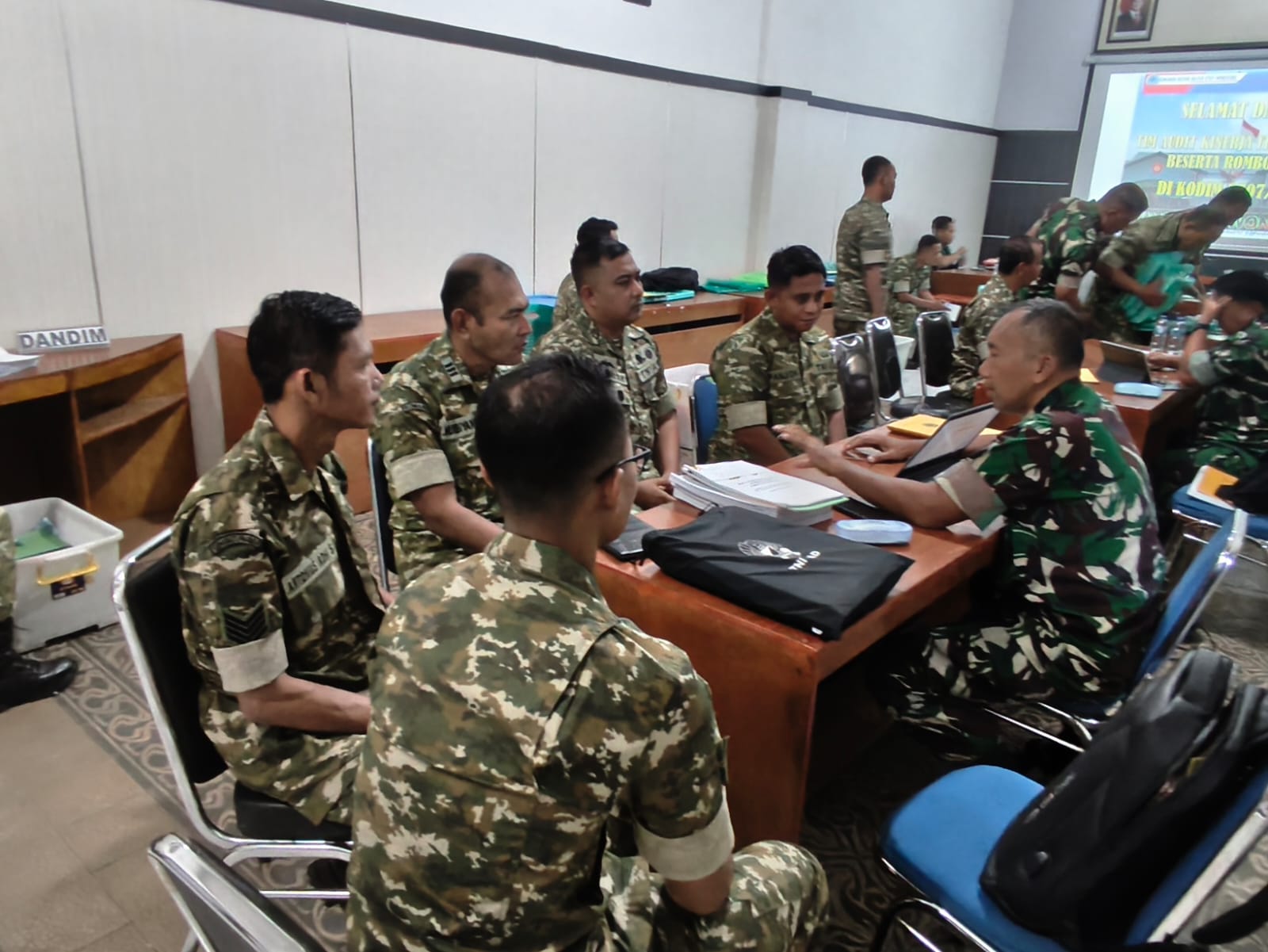 Wonosobo – Kodim 0707/Wonosobo menerima kunjungan Tim Pengawasan dan Pemeriksaan (Wasrik) Inspektorat Daerah Militer (Itdam) IV/Diponegoro Periode I Tahun Anggaran 2026. Kunjungan ini bertujuan untuk mengevaluasi pelaksanaan program kerja serta meningkatkan tertib administrasi dan akuntabilitas kinerja satuan. (24/4/2026)
