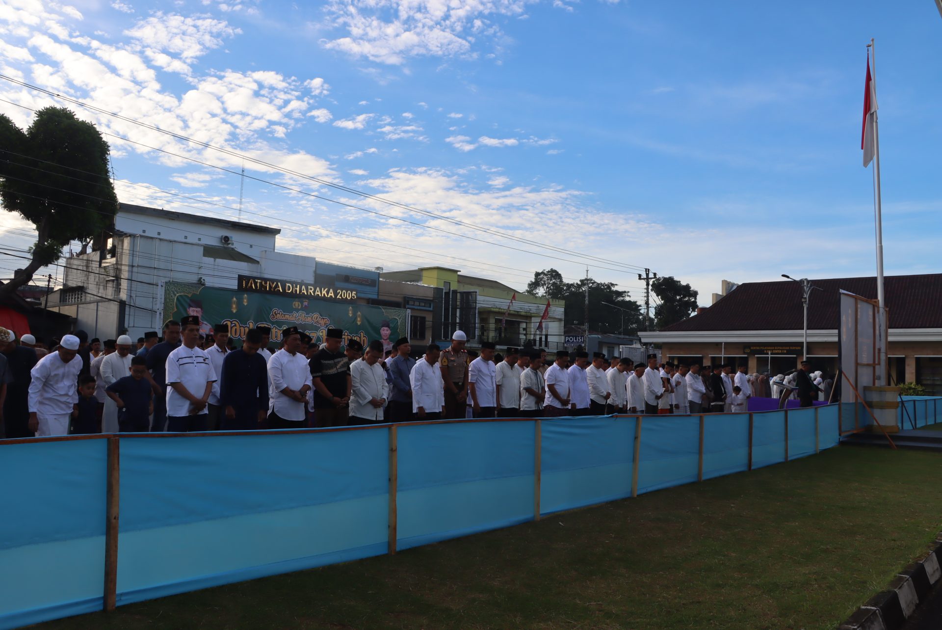 WONOSOBO — Halaman Markas Kepolisian Resor Wonosobo dipadati warga pada Sabtu pagi, 21 Maret 2026. Area yang sehari-hari digunakan untuk apel itu disulap menjadi tempat pelaksanaan salat Idul Fitri 1447 Hijriah. Sejak sebelum pukul 06.30 WIB, jemaah mulai berdatangan dengan membawa sajadah, memadati halaman Mapolres.
