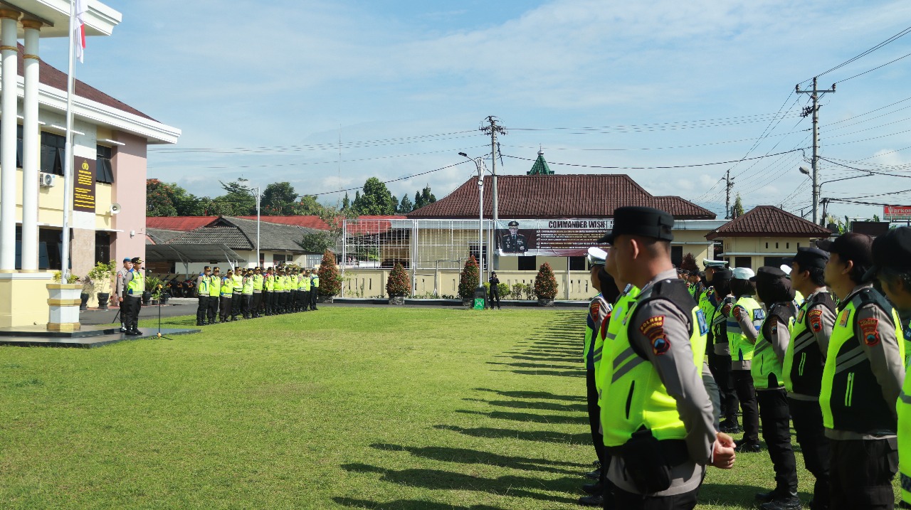 Kegiatan berlangsung di halaman Mapolres Wonosobo dan diikuti oleh personel dari berbagai fungsi, termasuk peleton siaga bencana yang disiapkan untuk merespons cepat kondisi darurat di wilayah Kabupaten Wonosobo.
