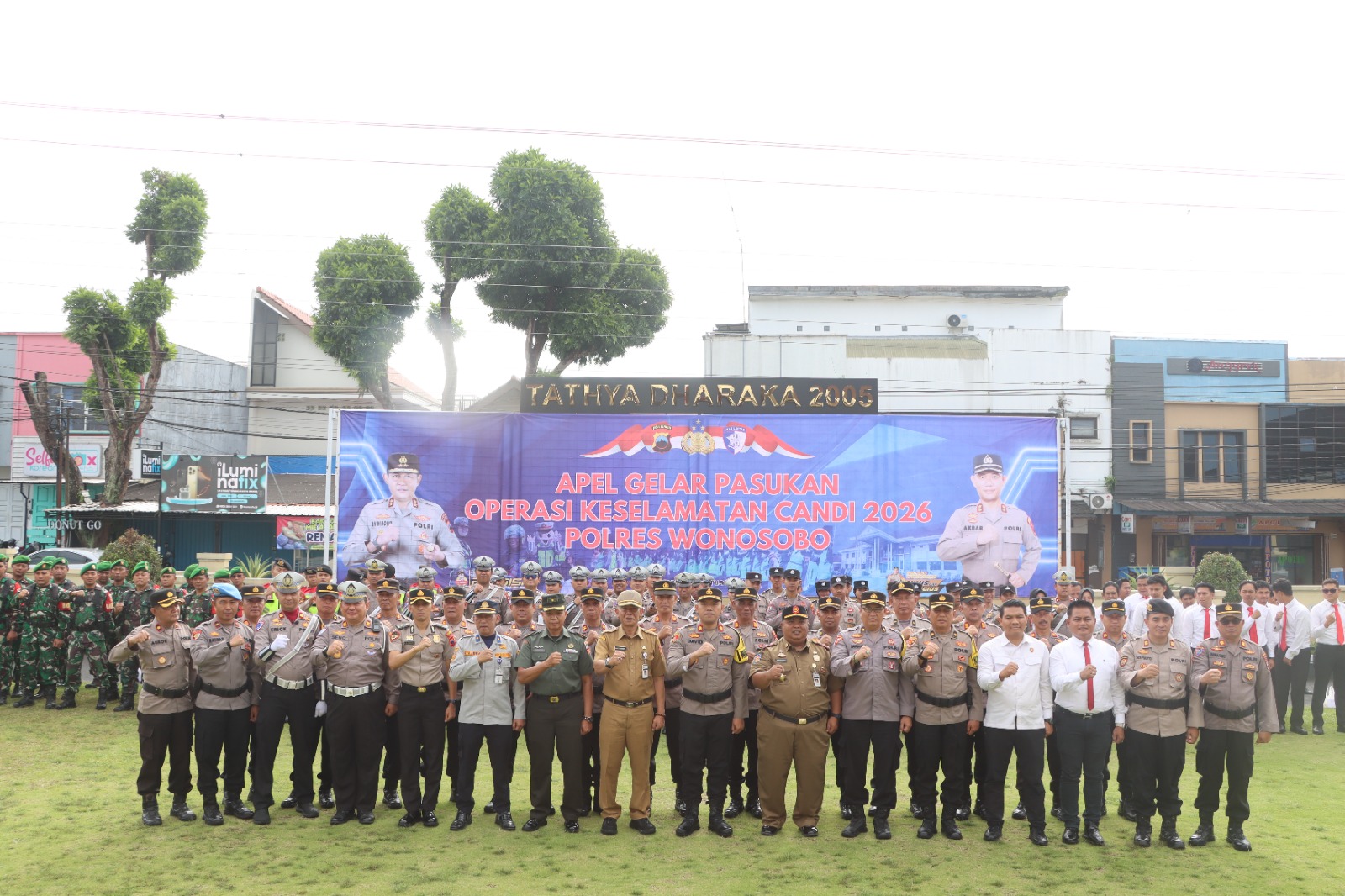 Polres Wonosobo melaksanakan Apel Gelar Pasukan Operasi Keselamatan Candi-2026 yang dipimpin Wakapolres Wonosobo Kompol Agustinus David Putraningtyas, S.Sos., M.H., pada Senin (2/2/2026) di halaman Mapolres Wonosobo. Apel gelar pasukan tersebut diikuti oleh jajaran Forkopimda Kabupaten Wonosobo, TNI, Dinas Perhubungan, dan Satpol PP