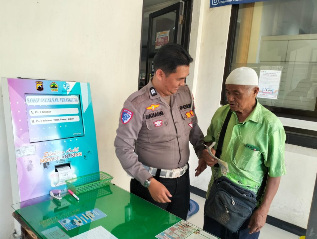 Danang, salah satu petugas di Samsat Temanggung menjelaskan bahwa banyak wajib pajak lansia yang kesulitan membaca formulir atau memahami alur pembayaran, terutama saat antrean cukup panjang. “Kami ingin menciptakan suasana pelayanan yang lebih ramah dan membantu mereka yang membutuhkan pendampingan,” ujarnya.