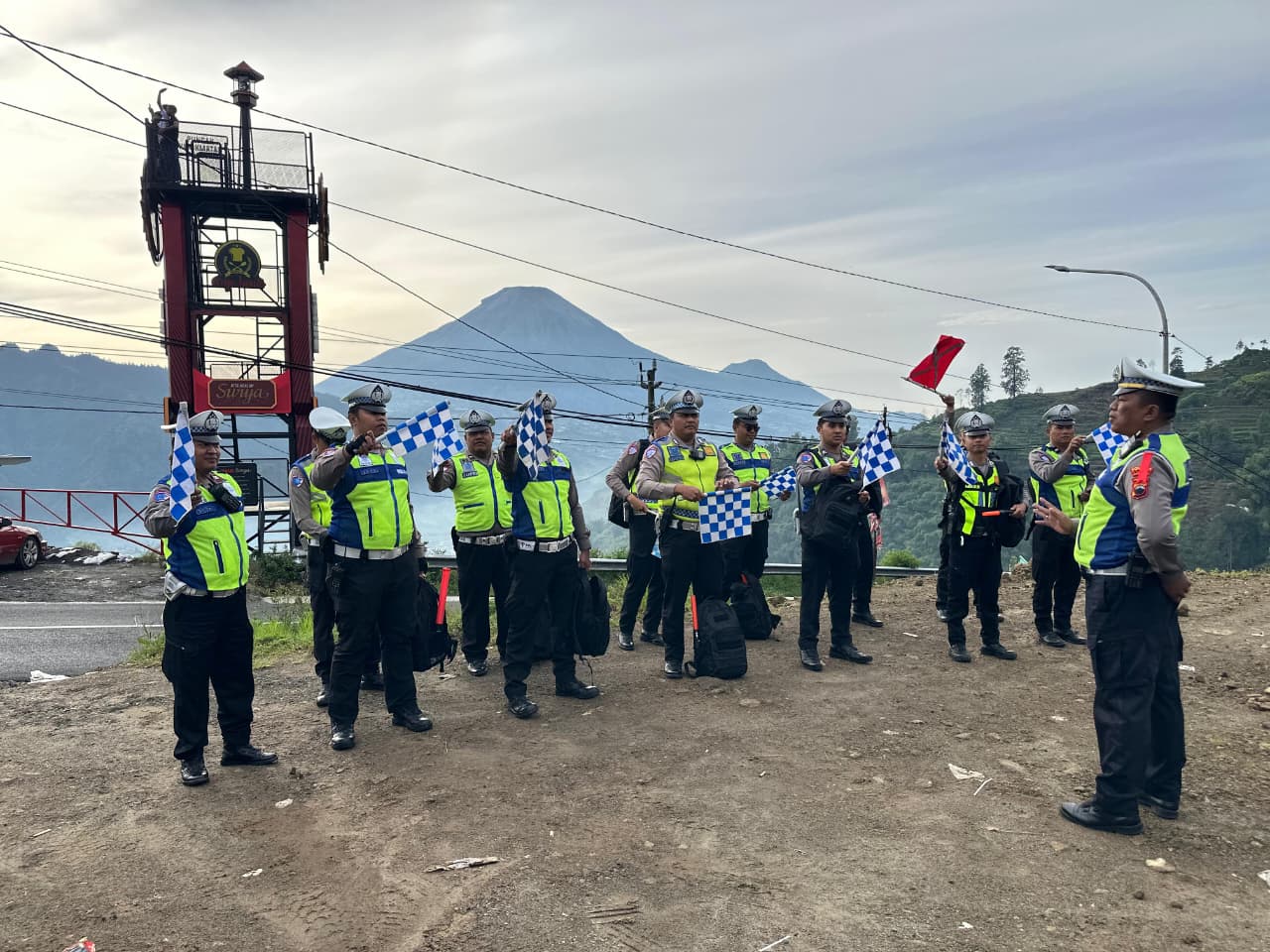Wonosobo — Satuan Lalu Lintas Polres Wonosobo menggelar apel pengecekan kelengkapan personel dalam rangka persiapan pengamanan malam Tahun Baru 2026 di jalur dan objek wisata Dieng. Apel dilaksanakan di Pos Polisi Gardu Pandang, Selasa pagi, 30 Desember 2025.