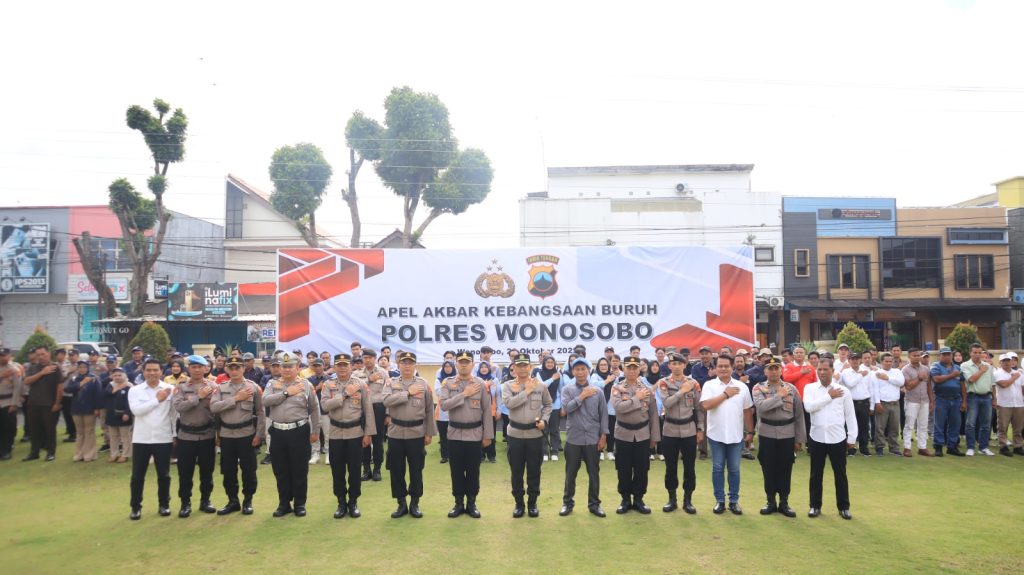 Wonosobo – Polres Wonosobo menggelar Apel Akbar Kebangsaan Buruh pada Kamis (23/10/2025) pagi di halaman Mapolres Wonosobo. Kegiatan ini diikuti oleh jajaran pejabat utama, personel Polres Wonosobo, serta perwakilan buruh dari berbagai wilayah di Kabupaten Wonosobo.