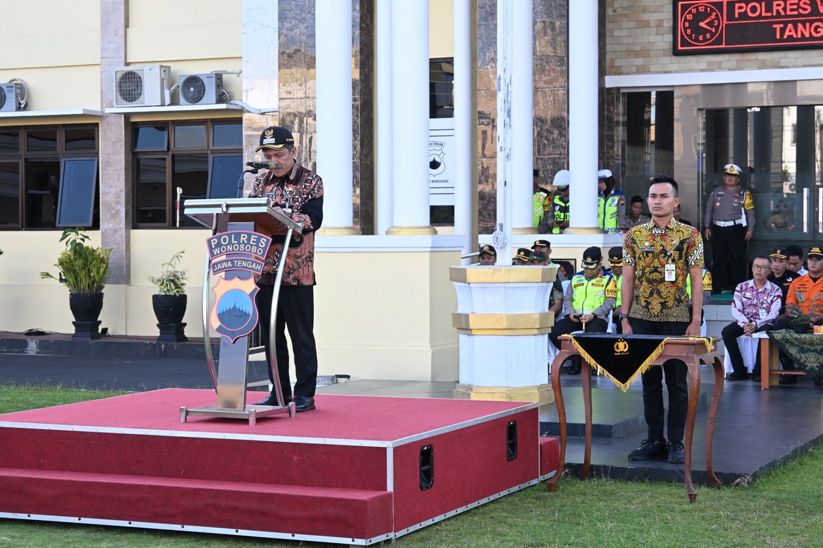Bupati Wonosobo Afif Nurhidayat bertindak sebagai pimpinan apel sekaligus membacakan amanat langsung dari Kapolri Jenderal Polisi Listyo Sigit Prabowo.