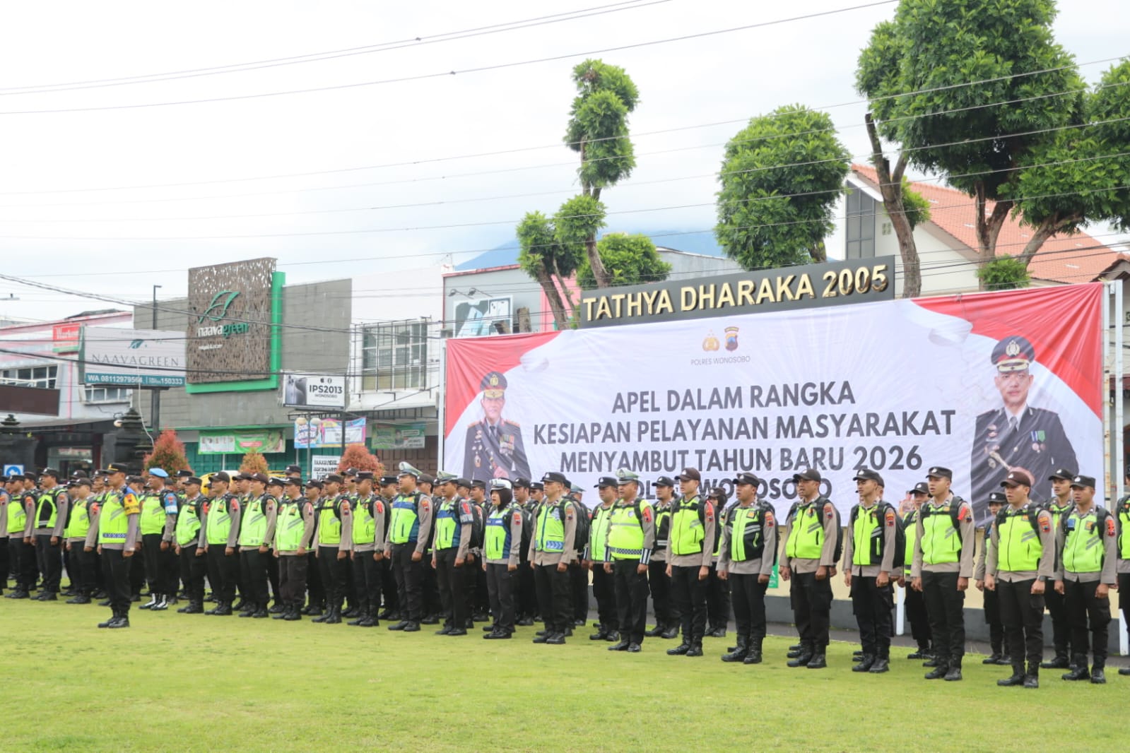 WONOSOBO — Kapolres Wonosobo AKBP M. Kasim Akbar Bantilan memimpin apel kesiapan pasukan penebalan pengamanan malam pergantian tahun di halaman Mapolres Wonosobo, Rabu pagi, 31 Desember 2025. Apel yang dimulai sekitar pukul 07.30 WIB itu digelar untuk memastikan kesiapan personel tambahan yang akan memperkuat pengamanan malam Tahun Baru.