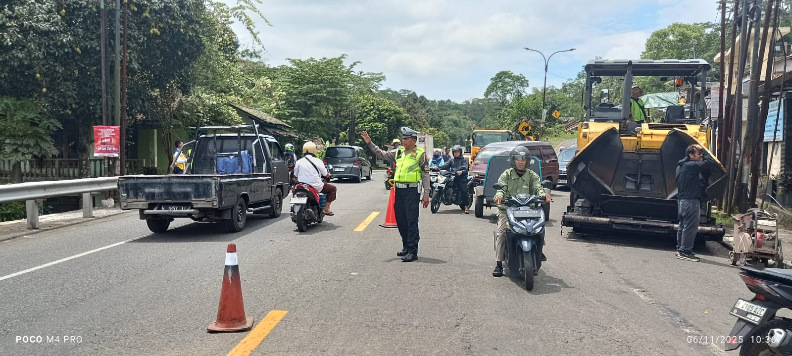 Langkah cepat pengaturan lalu lintas itu dilakukan setelah antrean kendaraan mulai terlihat panjang di ruas jalan utama tersebut. Personel Satlantas langsung berkoordinasi dengan pihak pelaksana lapangan untuk menyesuaikan ritme pekerjaan dan arus kendaraan.