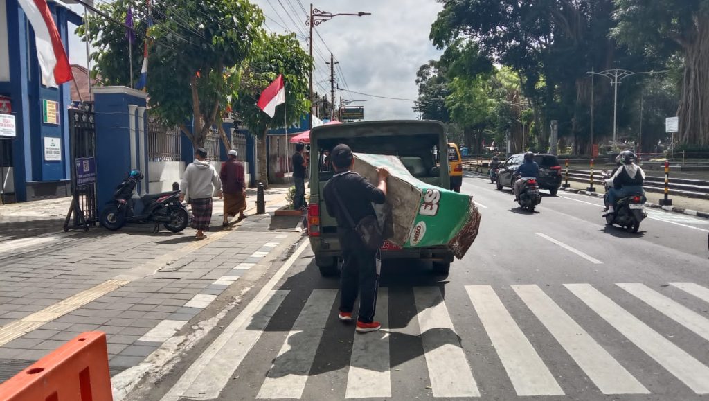 Tindakan nyata ini terlihat saat petugas Satpol PP menyita properti PKL dan langsung mengangkutnya ke kendaraan dinas, seperti tampak pada foto berikut.