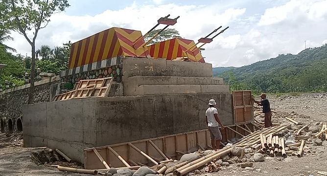 Wonosobo – Pengerjaan Jembatan Gantung Stamelo (Stanmelo) yang menghubungkan Dusun Melokan, Desa Kalidadap, Kecamatan Wadaslintang dengan Dusun Stana (Setana), Desa Kaliguwo, Kecamatan Kaliwiro, Kabupaten Wonosobo, kini semakin digenjot pasca libur lebaran.
