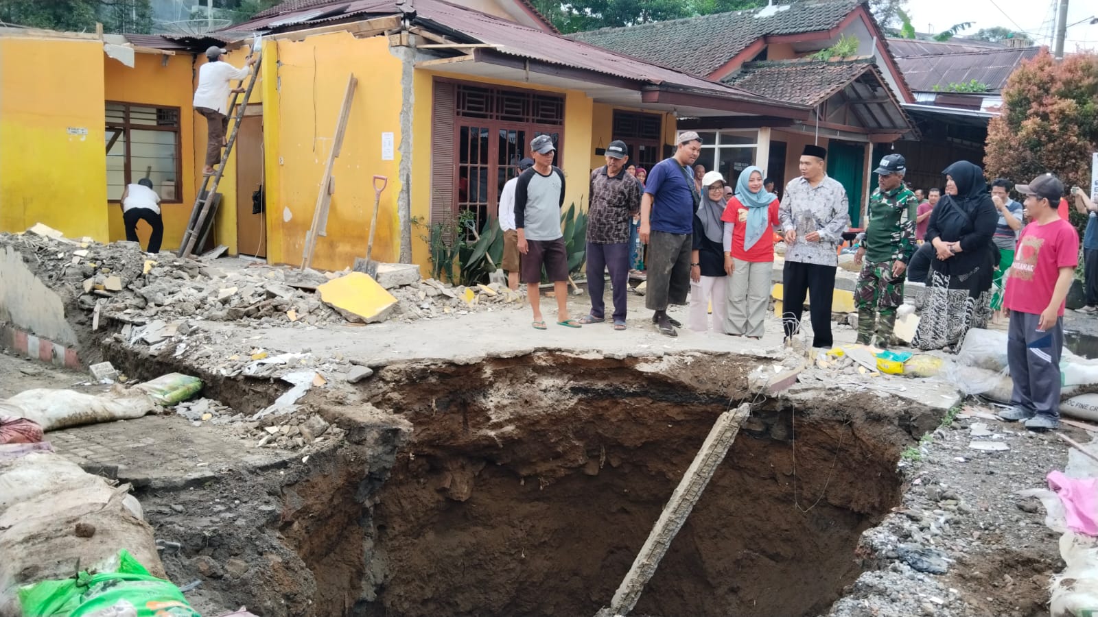 Kegiatan yang dimulai sejak pukul 08.00 WIB ini merupakan respon cepat unsur terkait guna mengantisipasi kerusakan bangunan yang lebih parah serta menjamin keselamatan penghuni rumah dan warga sekitar. Struktur tanah yang tidak stabil akibat amblasnya gorong-gorong mengharuskan bangunan tersebut segera dibongkar secara terkendali.