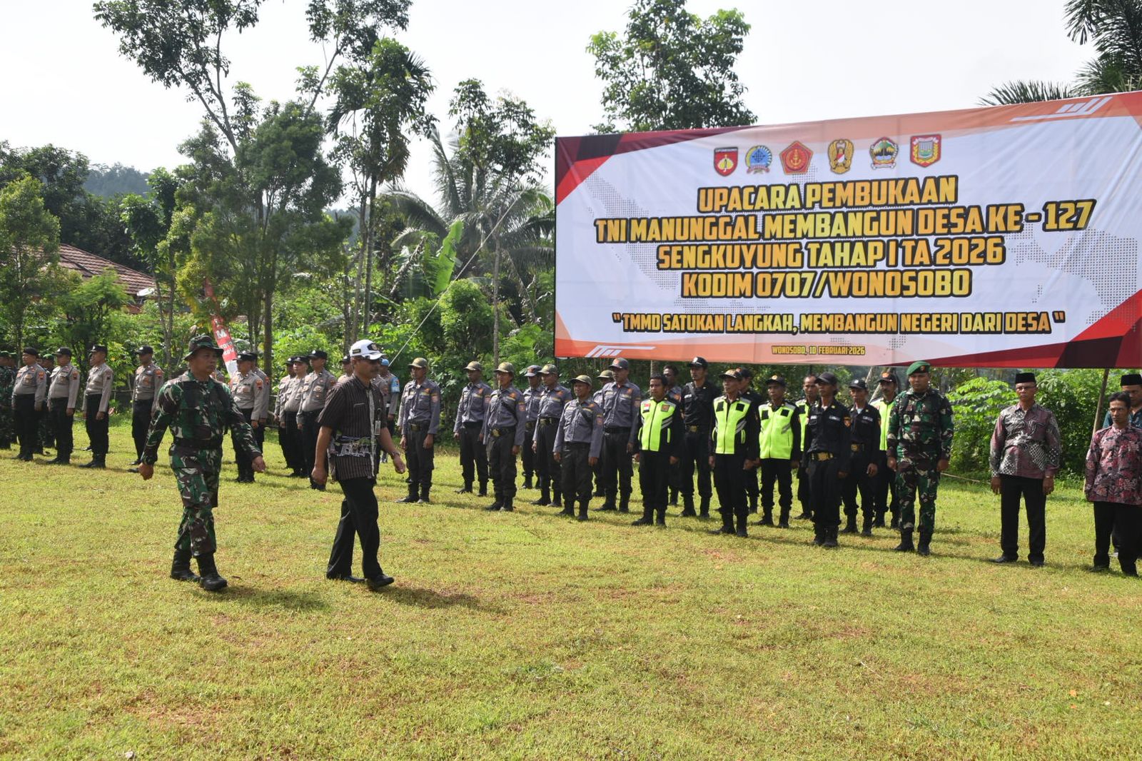 Wonosobo – Program TNI Manunggal Membangun Desa (TMMD) Sengkuyung Tahap I Tahun Anggaran 2026 resmi dibuka di Desa Trimulyo, Kecamatan Wadaslintang. Pembukaan TMMD Kodim 0707/Wonosobo tersebut dilakukan oleh Bupati Wonosobo yang diwakili Staf Ahli Pemerintah Daerah, Yusuf Hariyanto. (10/2026)