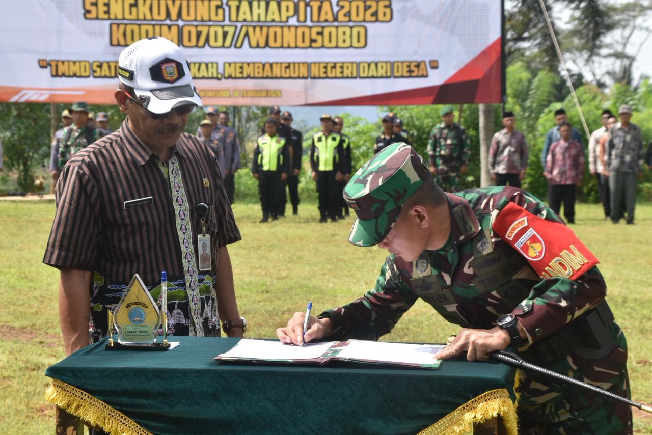 TMMD Sengkuyung Tahap I tahun ini mengusung tema “TMMD Satukan Langkah, Membangun Negeri dari Desa” dan akan berlangsung hingga 11 Maret 2026. Program tersebut menjadi penegasan komitmen bersama bahwa kemajuan daerah harus dimulai dari desa yang kuat, mandiri, dan mampu mengelola potensi wilayahnya secara berkelanjutan.