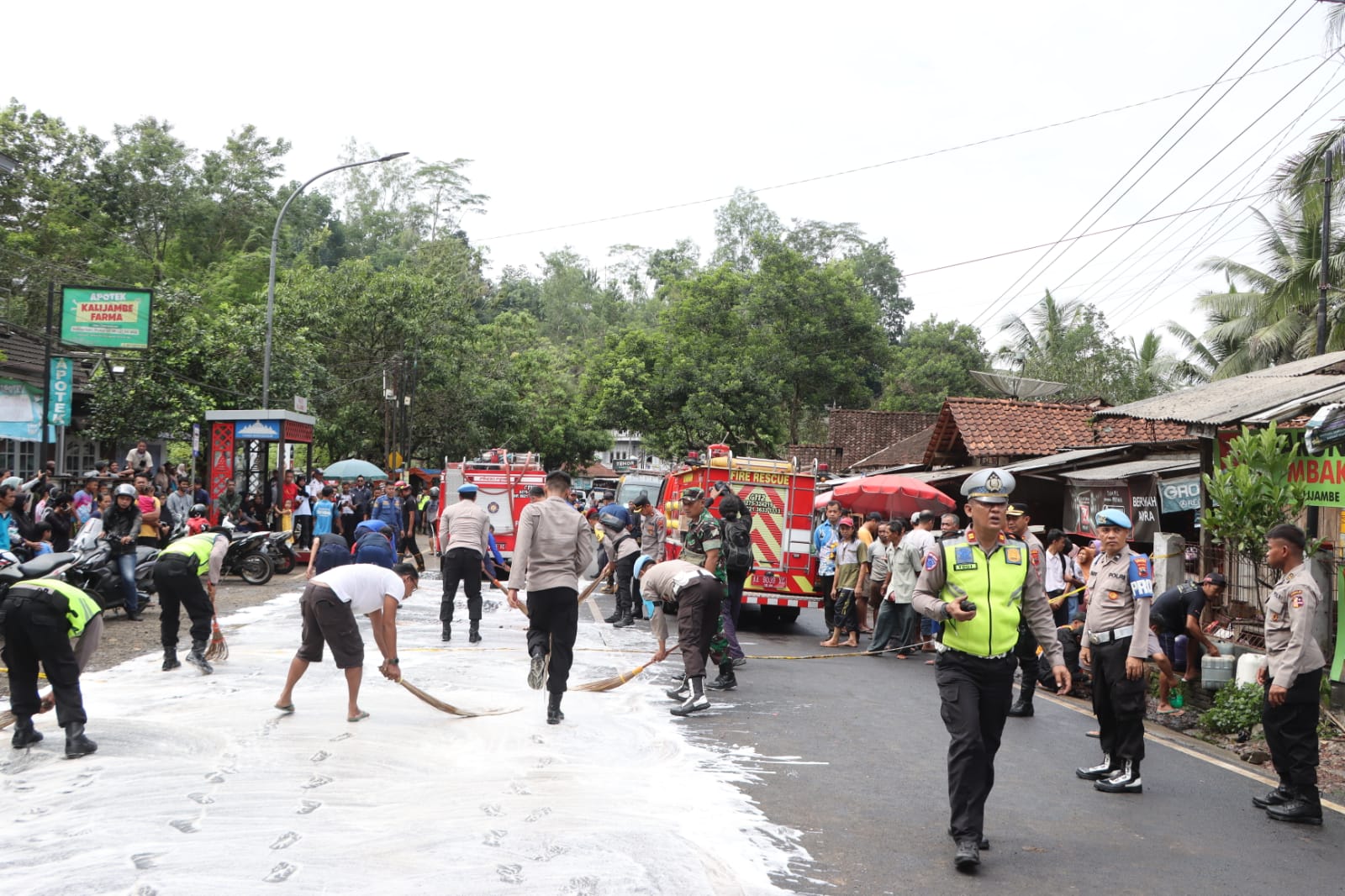 Petugas dari Damkar Kabupaten Purworejo, BPBD, Polres Purworejo, serta relawan segera turun ke lokasi. Sebuah mobil pemadam kebakaran disiagakan untuk mencegah potensi kebakaran akibat tumpahan solar dari tangki truk.