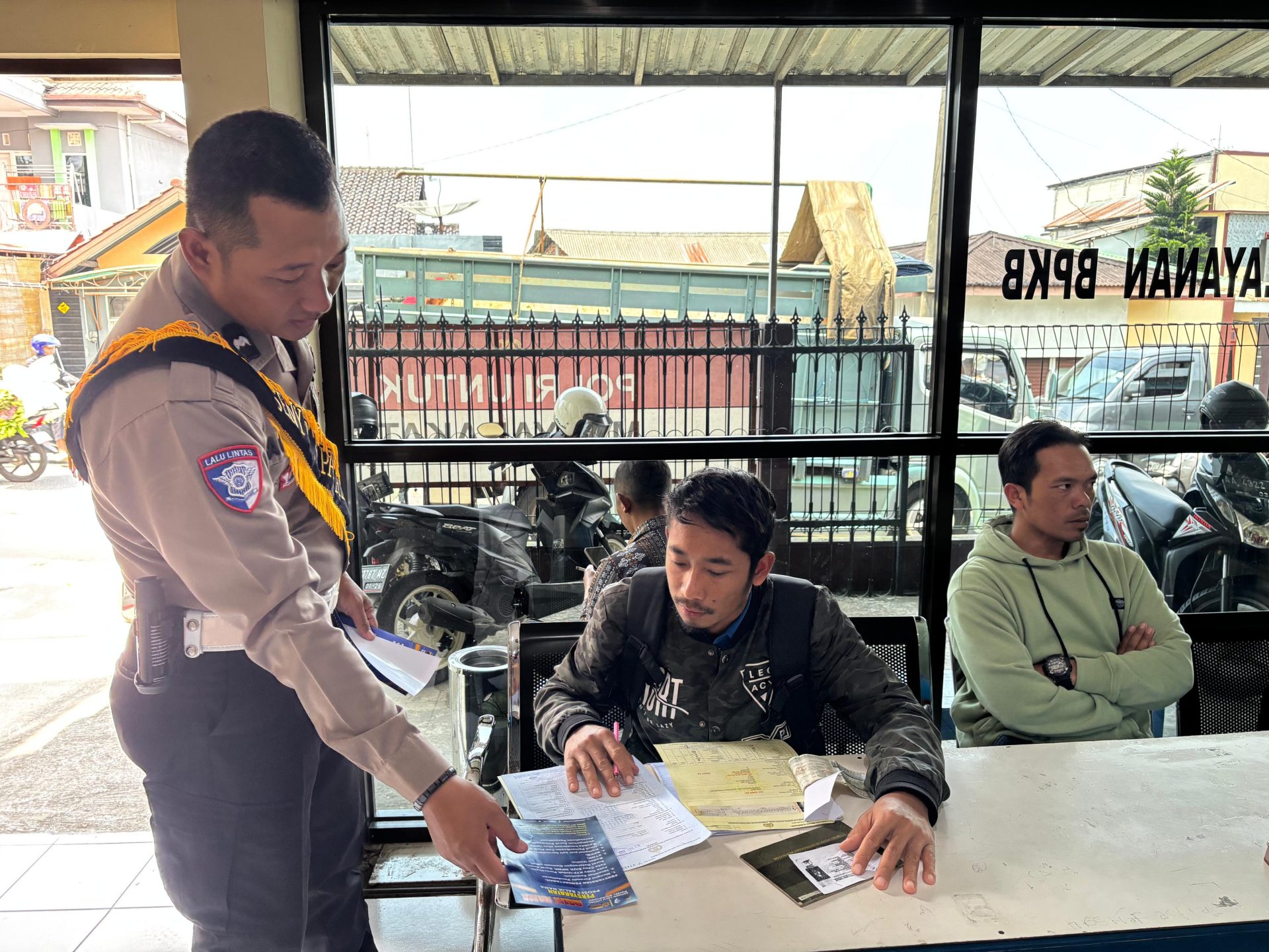 Melalui kegiatan tersebut, anggota Satlantas berinteraksi langsung dengan warga, memberikan informasi terkait prosedur pelayanan BPKB, serta mengingatkan pentingnya kelengkapan surat kendaraan dan keselamatan saat berkendara.